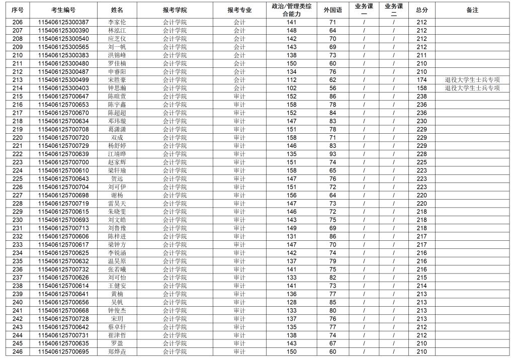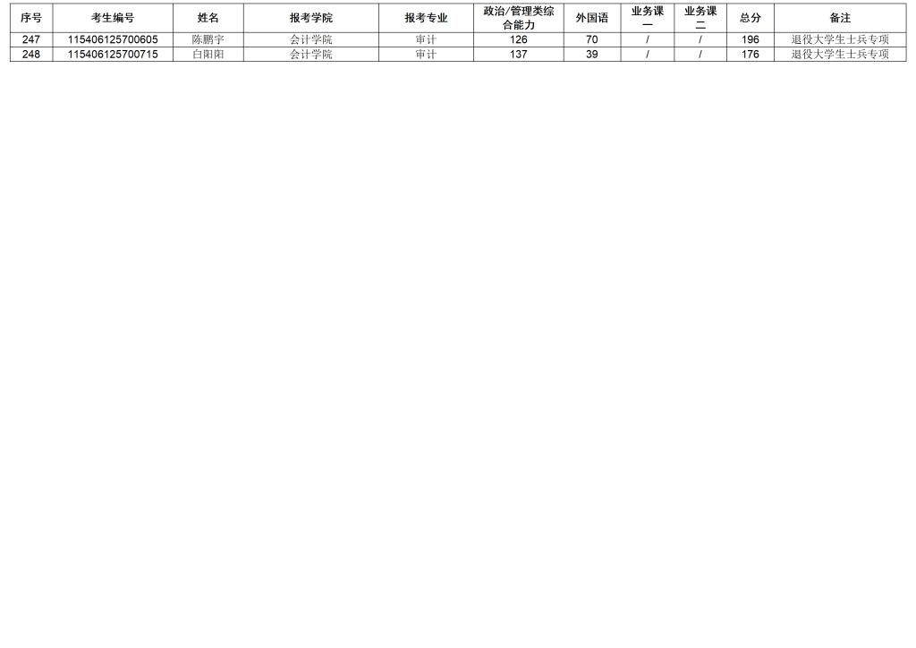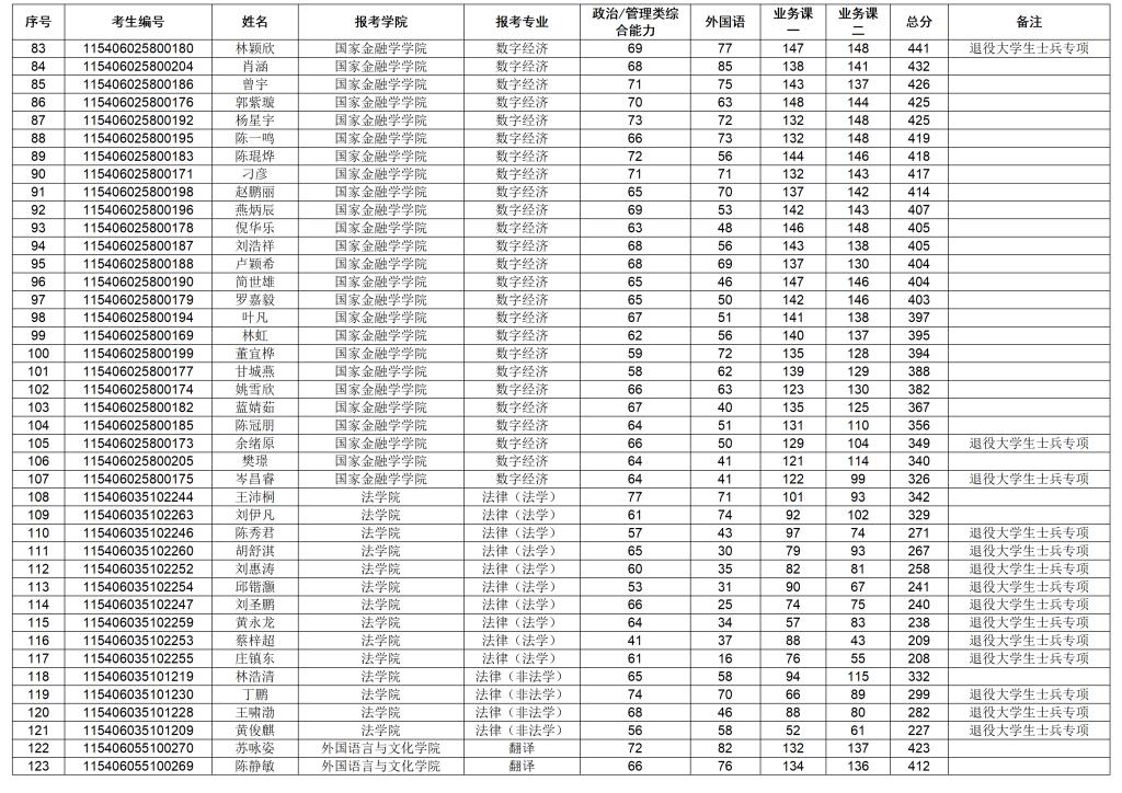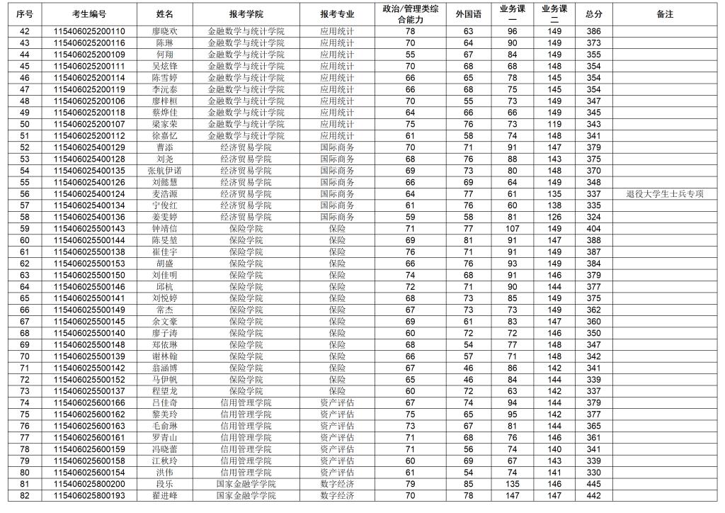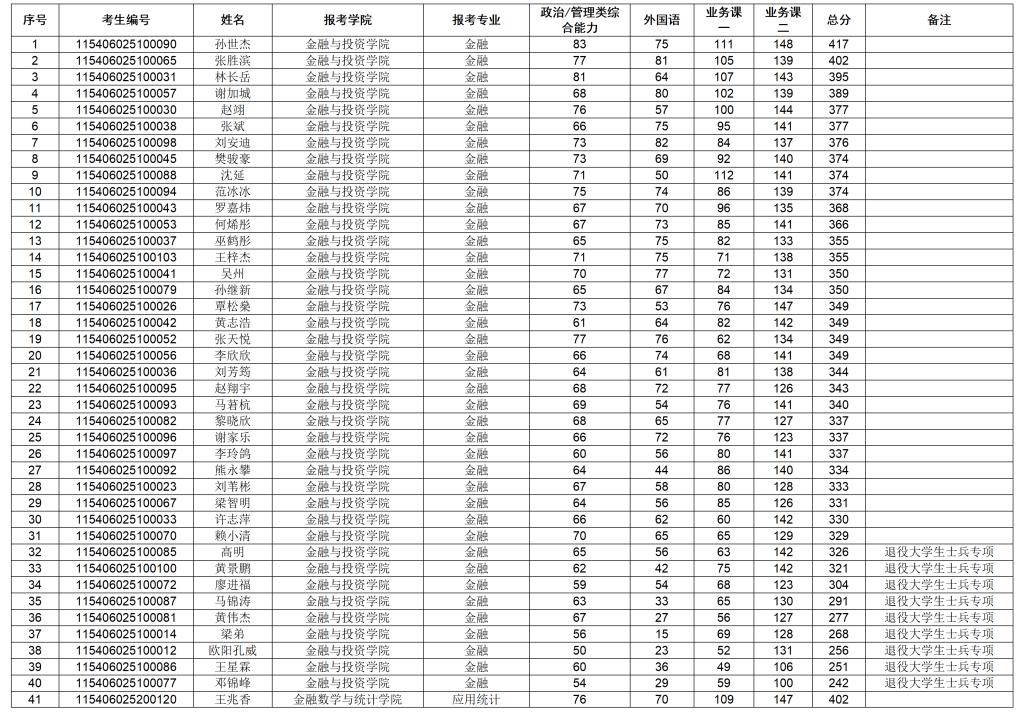 广东金融学院2026年硕士研究生招生考试一志愿复试考生名单