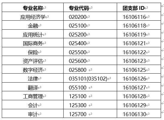 研究生新生团员在确认具体班级团支部名称后,省内新生团员通过“广东智慧团建”系统【公众号搜12355青年之声】搜索团支部名称或ID,发起转接;省外新生团员在原单位开具团组织关系介绍信后,通过原系统发起转入广东的转接申请,并于10个自然日内在“广东智慧团建”系统【公众号搜12355青年之声】向转入团组织(所在班级团支部)进行团员报到。各班级团支部组织代码ID如下表。